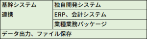 - 基幹システム連携(独自開発システム、ERP/会計システム、業種業務パッケージ)